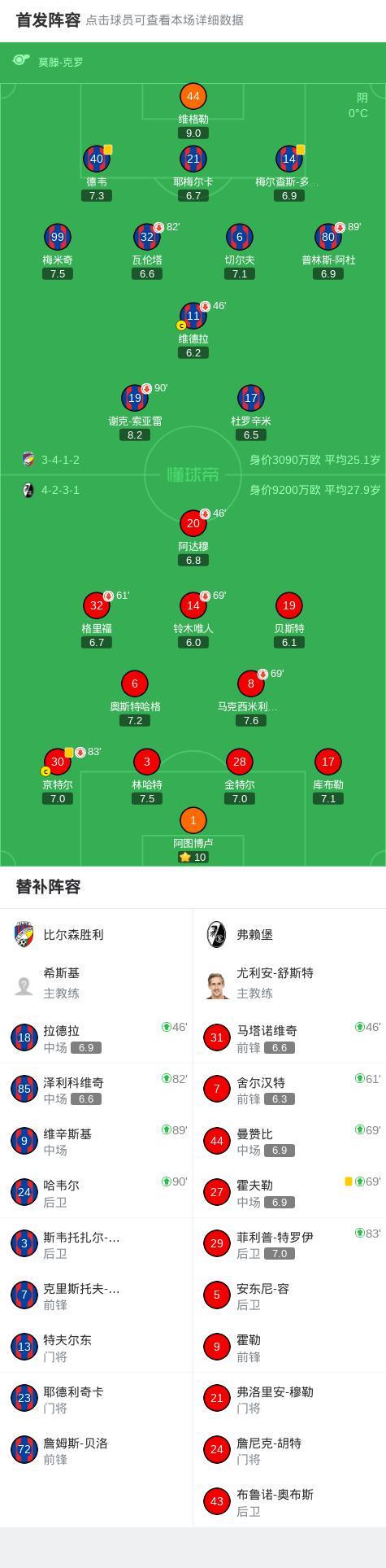 比尔森胜利0-0弗赖堡,双方破门乏术